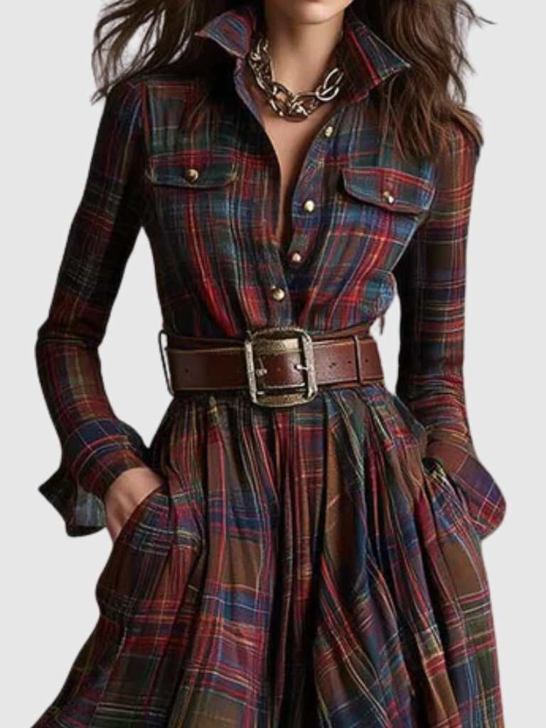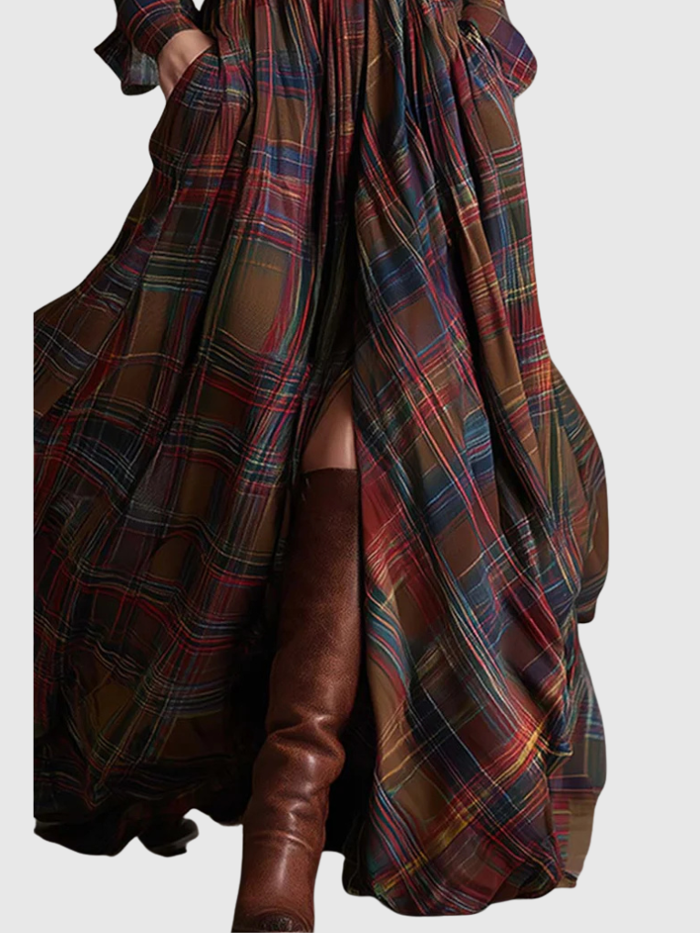 Tijdloze stijl: Vintage ruitpatroon met etnisch geïnspireerde tinten voor een elegante uitstraling.